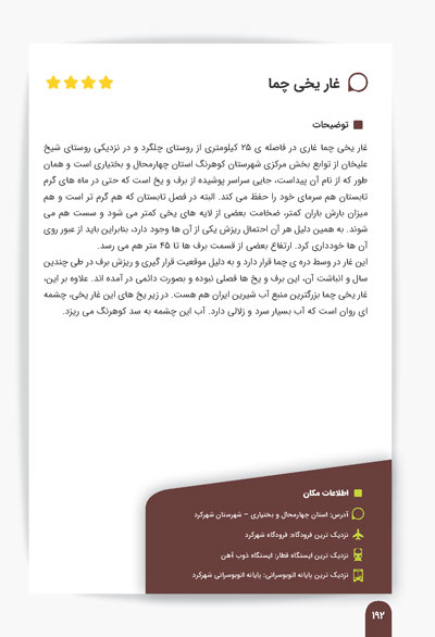 اگر بار چمدان خود را بستهاید و قصد مسافرت به جای جای ایران عزیزمان را دارید ولی برنامه ریزی سفر و انتخاب مقصد برای شما کمی مشکل است، ما برای شما در این کتاب زیباترین و بهترین جاذبههای طبیعی و تاریخی ایران را جمع آوری کردهایم و تمام راههای دسترسی را مشخص کردهایم تا شما بتوانید به سادگی برای یک سفر فوق العاده برنامه ریزی کنید.
