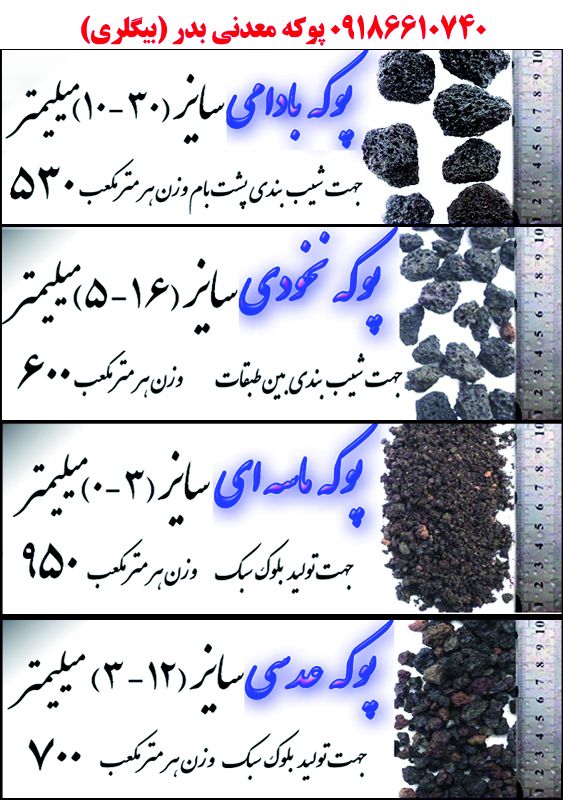 پوکه معدنی بدر خصوصیات ارزان سبک (دارای وزن حجمی 500 الی 700 کیلو گرم برمتر مکعب) عایق صوت و حرارت ضد حشرات و موریانه- فروش پوکه معدنی
