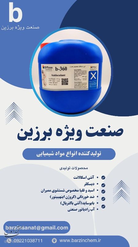 شرکت صنعت ویژه برزین تولید کننده انواع انتی اسکالانت و مواد ضد رسوب این مجموعه همچنین محصولات سفارشی به منظور کاربردهای خاص در مقیاس وسیع تولید می کند- فروش مواد شیمیایی