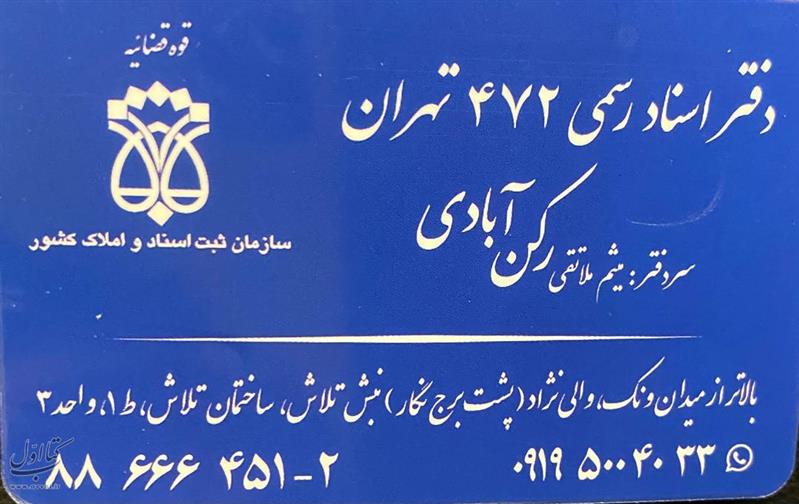 دفترخانه اسنادرسمی ۴۷۲ تهران رکن آبادی