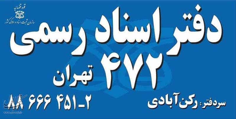 دفتر اسناد رسمی شماره 472تهران - رکن آبادی