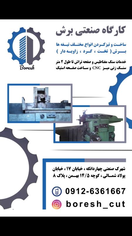 ارائه تمامی خدمات ساخت و تیز کردن انواع تیغه های برش تخت ،گرد ،زاویه دار خدمات صفحه تراش و سنگ مغناطیس تا طول 2 متر- تراشکاری و قالب سازی