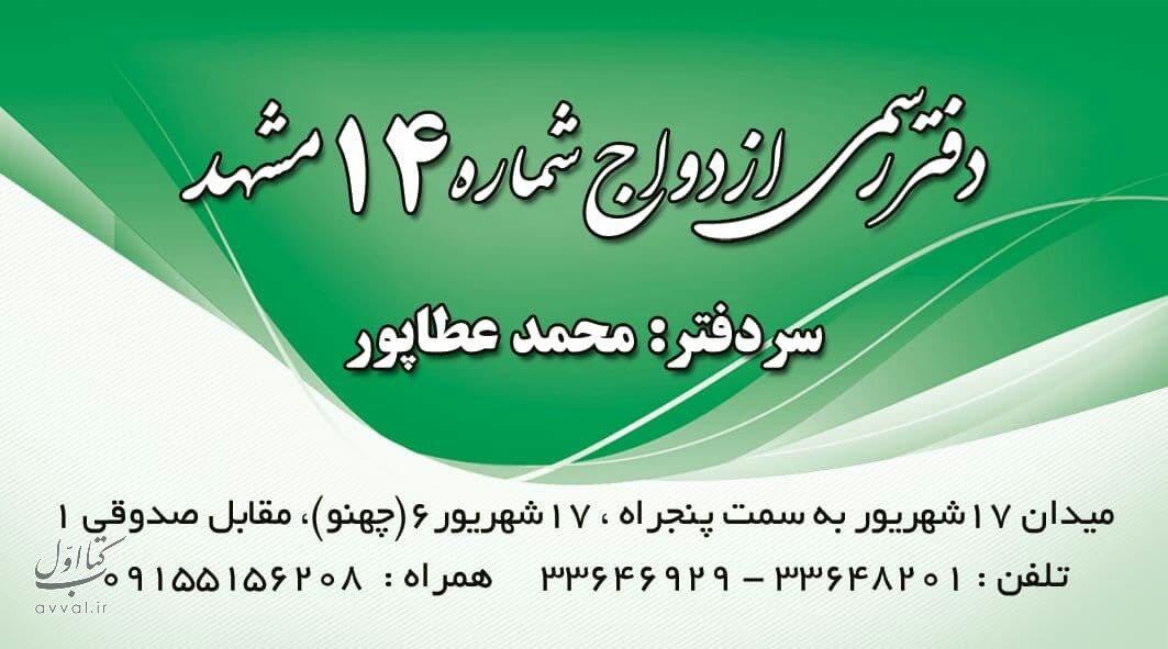 مشهد، منطقه 6، محله چهنو، بلوار 17 شهریور، 17 شهریور 6، مقابل صدوقی 1، پلاک 62
