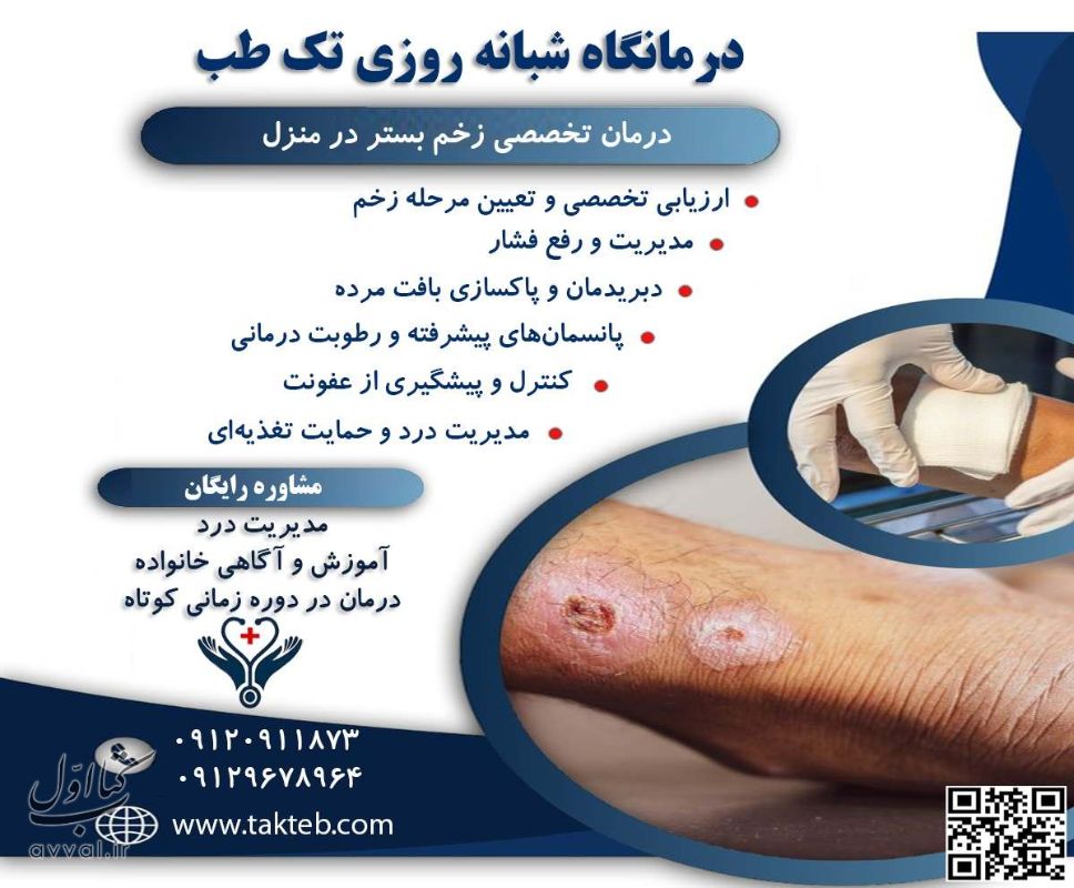 یکی از حوزه های تخصصی که در آن فعالیت میکنیم درمان تخصصی زخم است، درمان زخم بستر-زخمهای دیابتی،زخم سوختگی،زخمهای عفونی و سرطانی، زخمهای ایدیوپاتیک و تروماتیک از جمله مواردیست که بالاترین سطح کیفیت و در کوتاهترین زمان ممکن توسط متخصصین تک طب انجام میشود.