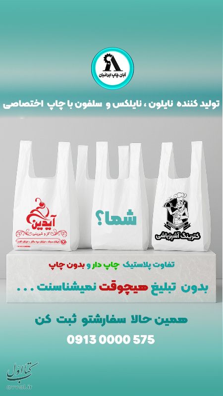 آبان چاپ تولیدکننده انواع نایلون و نایلکس دسته دار با چاپ اختصاصی، مناسب تمامی صنوف.