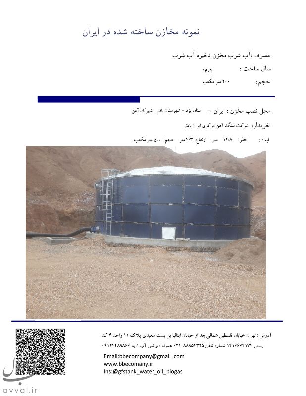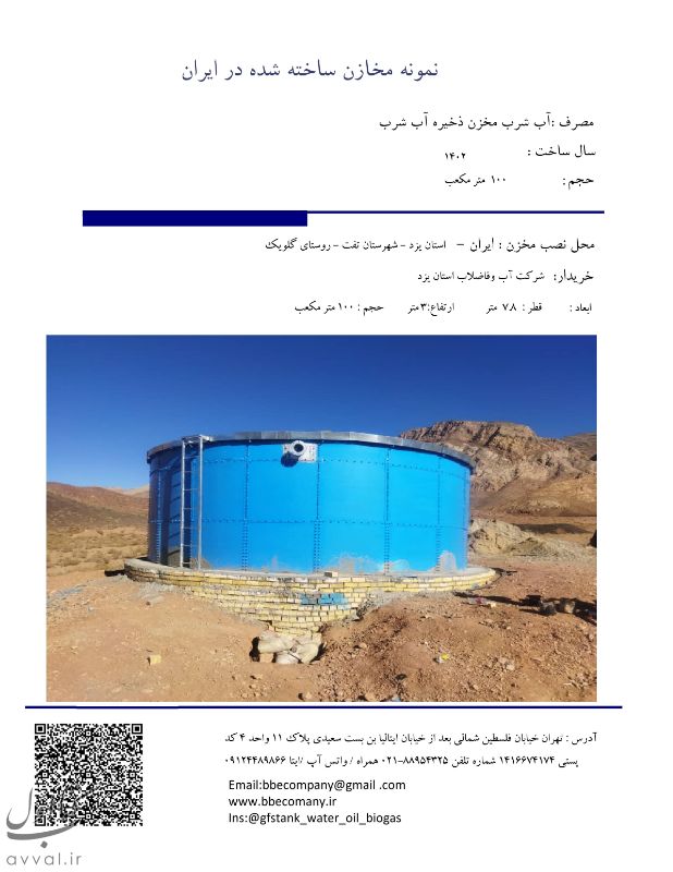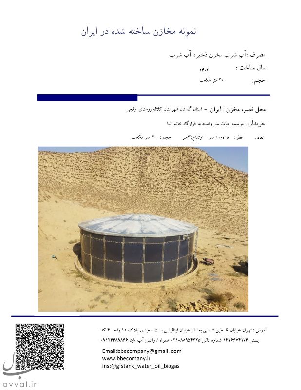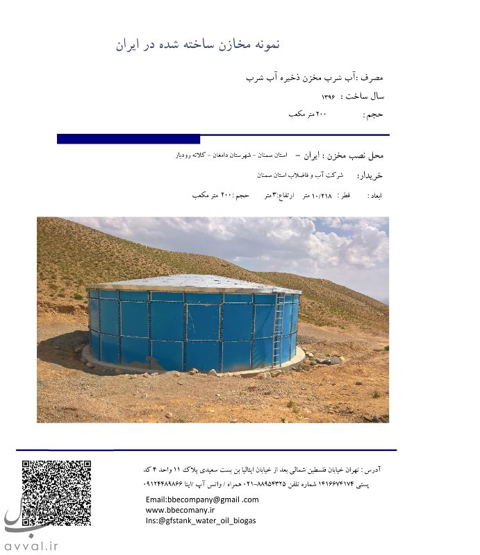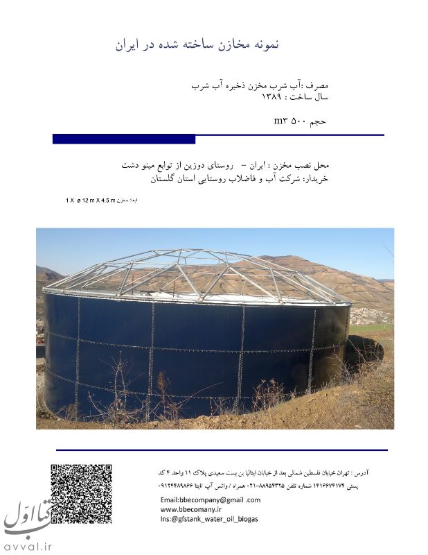 مخازن فولادی پیچ و مهره ای با پوشش شیشه برای نگهداری آب و فرایند فاضلاب از حجم 50 تا 30000 متر مکعب قابل ساخت میباشد . از مزایای این مخازن :