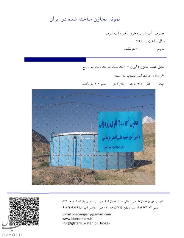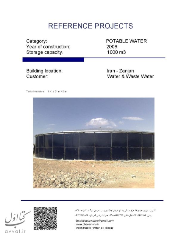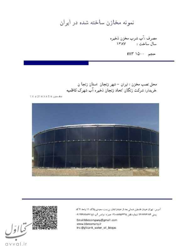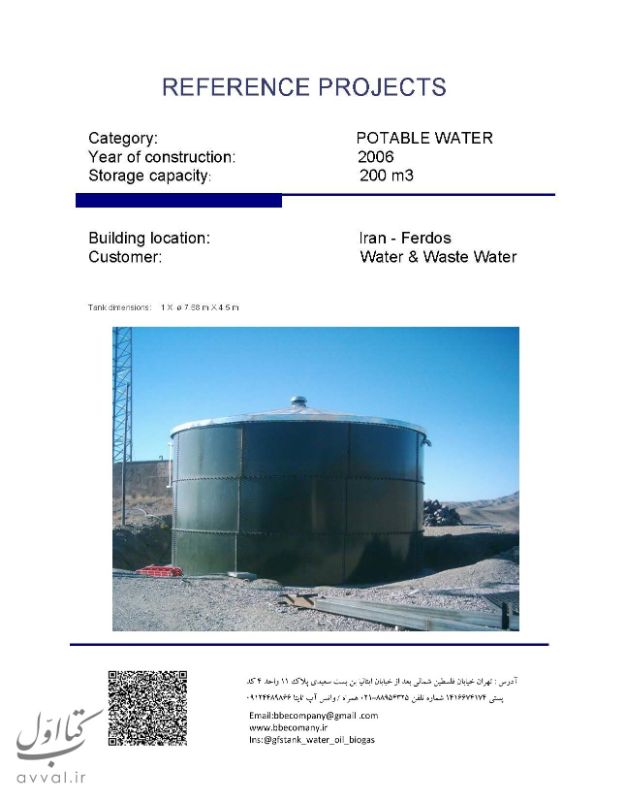 12- این شرکت تا کنون بیش از 65 دستگاه از این گونه مخازن را در سرتاسر ایران برای شرکت های آب و فاضلاب و بخش خصوصی ساخته و تحویل داده است .