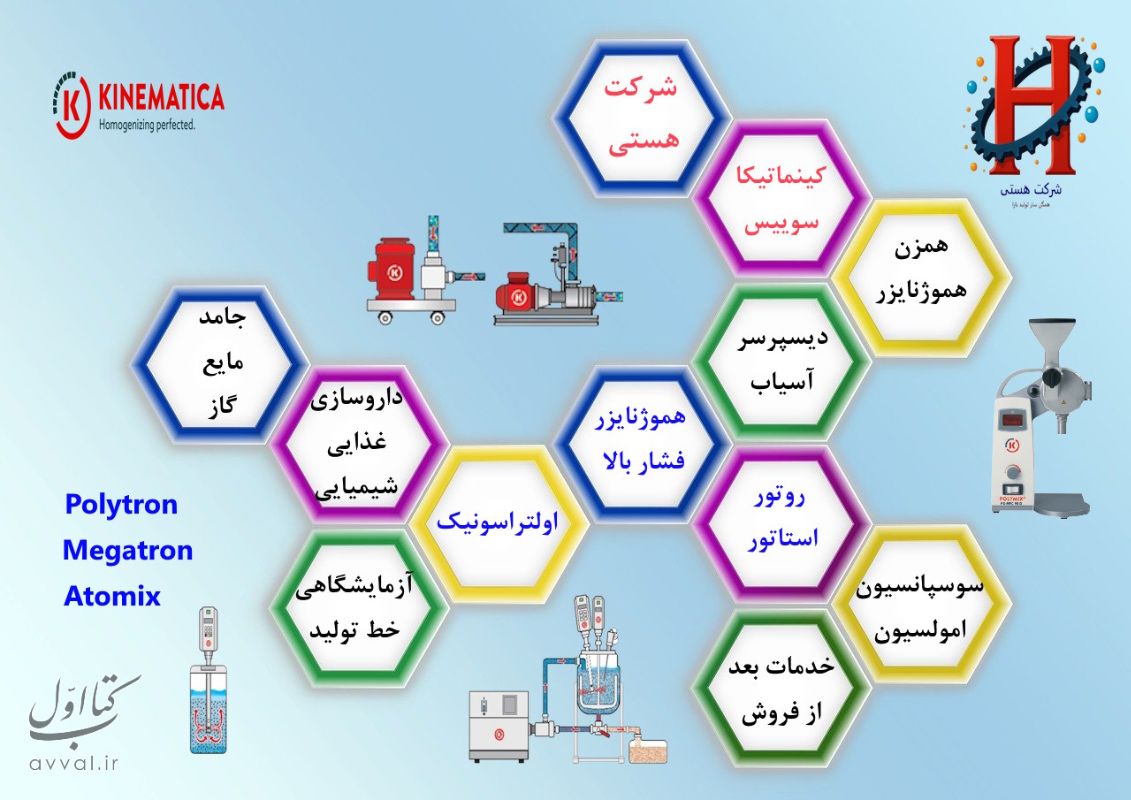 شرکت هستی(HASTI Co.) در زمینه تأمین و ارائه انواع هموژنایزر، دیسپرسر، میکسر و آسیاب و دستگاههای یاد شده آزمایشگاهی و صنعتی فعالیت می کند. ما با ارائه تجهیزات پیشرفته و با کیفیت ساخت کشور سوئیس و خدمات کامل شامل نصب، راه اندازی، آموزش، تعمیرات و پشتیبانی علمی و فنی، همراه مطمئن شما در صنایع دارویی، غذایی و لبنی، آرایشی بهداشتی، شیمیایی، نانو و مراکز تحقیقاتی و دانشگاهی در کنار شما هستیم. خواهشمند است جهت کسب اطلاعات بیشتر با این نمایندگی تماس حاصل فرمایید.