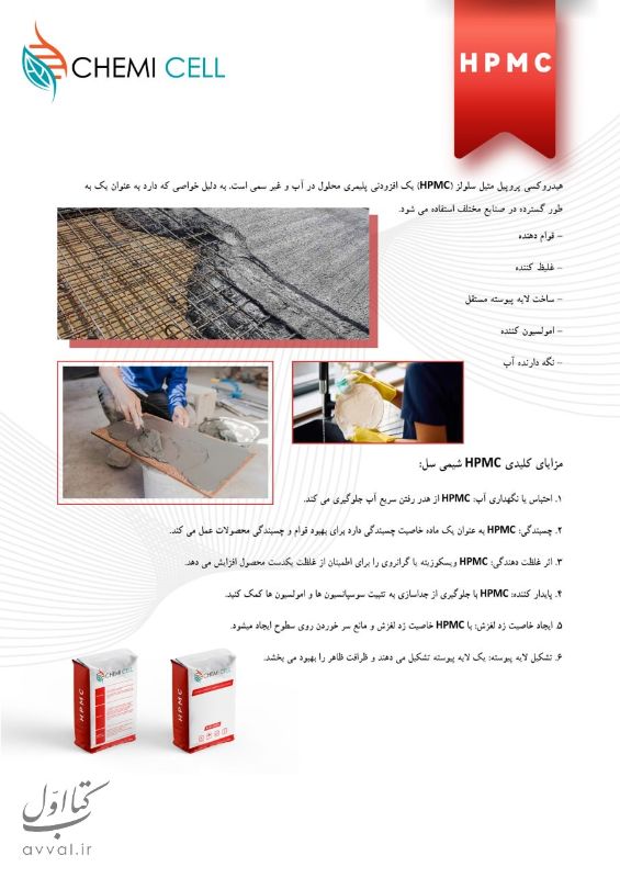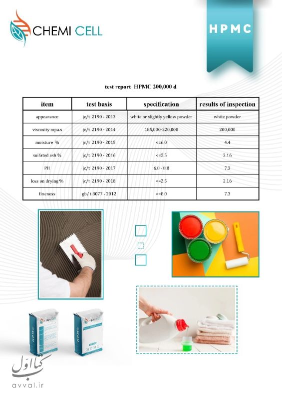 اچ پی ام سی یا هیدروکسی پروپیل متیل سلولز با گرید ویسکوزیته 200 هزار افزودنی پرکاربرد در ملات های خشک، چسب کاشی، گچ و سیمان است.