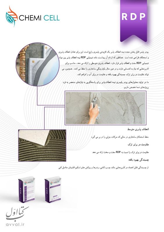 پودر پلیمری RDP جهت افزایش چسبندگی، انعطاف و مقاومت مکانیکی ملات های پایه سیمان مورد استفاده قرار می گیرد.