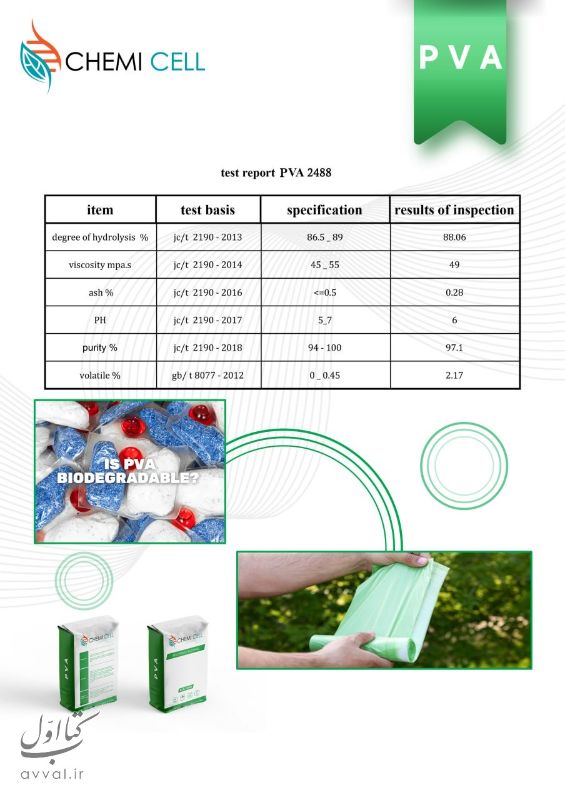 پلی وینیل الکل 2488 پودری سفید و محلول در آب است که در تولید چسب های پایه آب، رزین ها، رنگ و پوشش های صنعتی استفاده می شود.