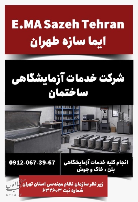 شرکت خدمات آزمایشگاهی ساختمان انجام کلیه خدمات بتن ، خاک و جوش دارای تاییدیه سازمان نظام مهندسی استان تهران شماره تماس 09120673967- آزمایشگاه خاک شناسی