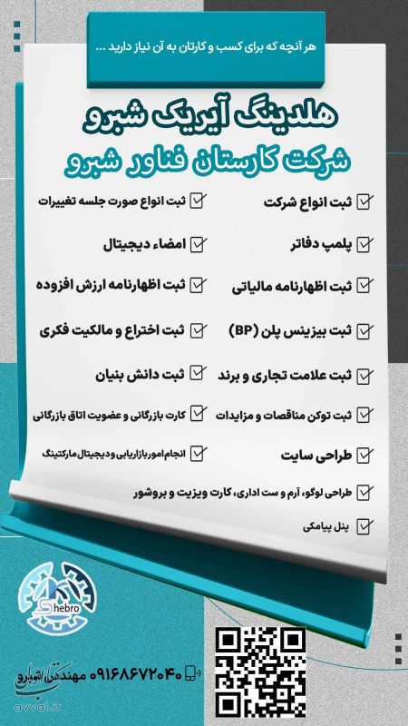 ثبت شرکت،ثبت برند،کارت بازرگانی،معتمدمالیاتی،تغییرات شرکت،کارت عضویت اتاق بازرگانی،ثبت اختراع،- ثبت شرکت